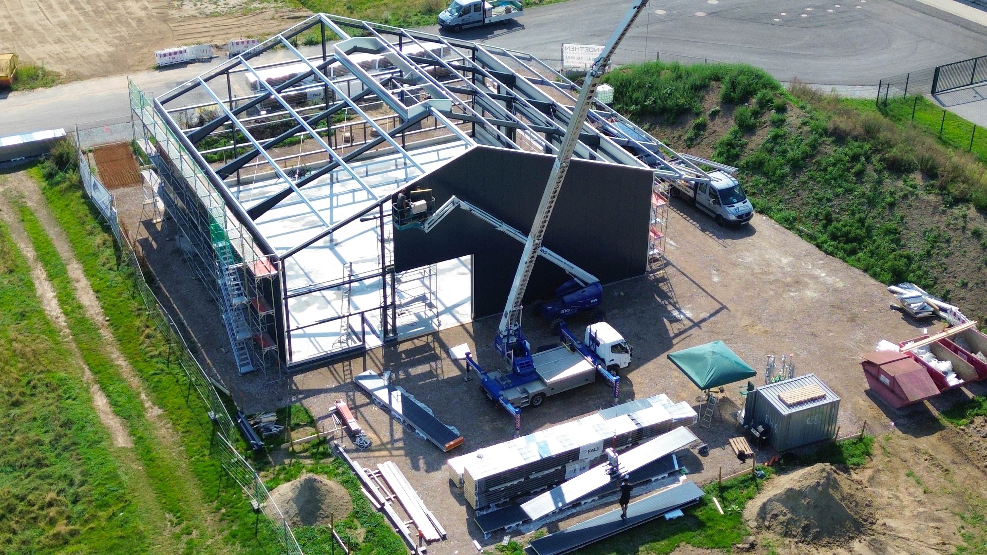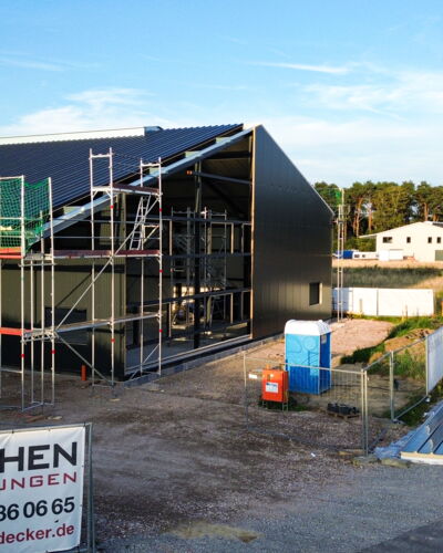 Mit der abgeschlossenen Dach- und Fassadenmontage steht nun die Feinarbeit auf dem Programm. In den kommenden Wochen wird unser Team die verbleibenden Außenarbeiten und den Innenausbau vorantreiben. Zudem sorgen wir für die nötige Abdichtung, um das Gebäude vor Witterungseinflüssen zu schützen und die Fertigstellung zügig voranzutreiben.